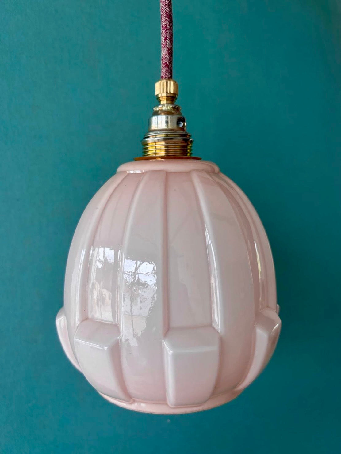 Rosée is een zachte blikvanger met Franse allure. Het vintage melkglas in poederroze tint verspreidt een warm, dromerig licht en geeft elke ruimte direct karakter. De subtiele facetten zorgen voor diepte en elegantie, terwijl de vorm tijdloos blijft.