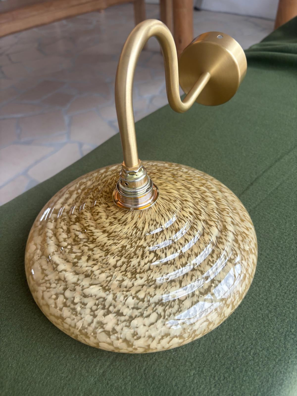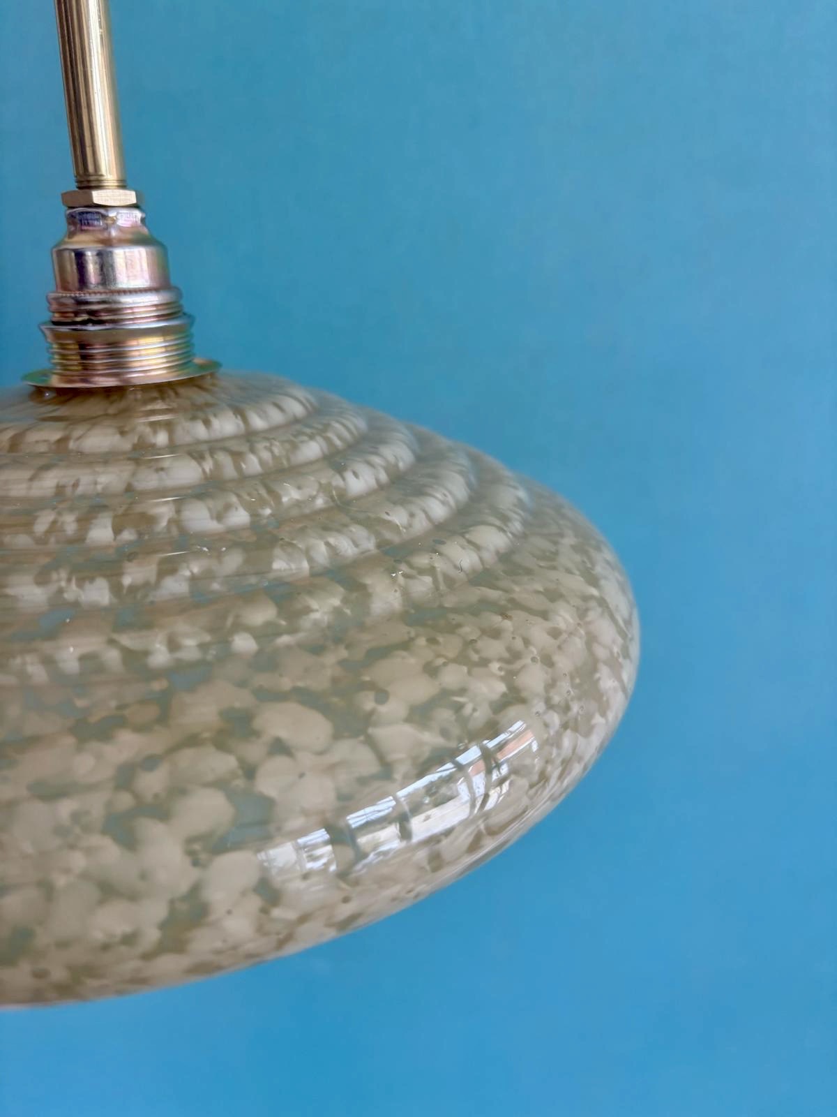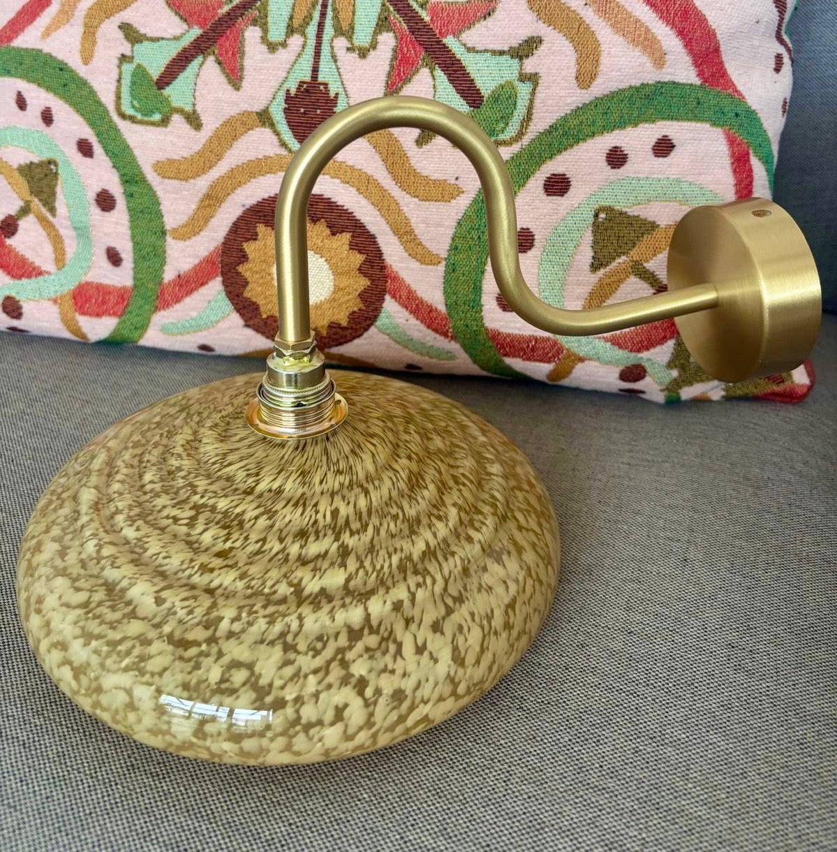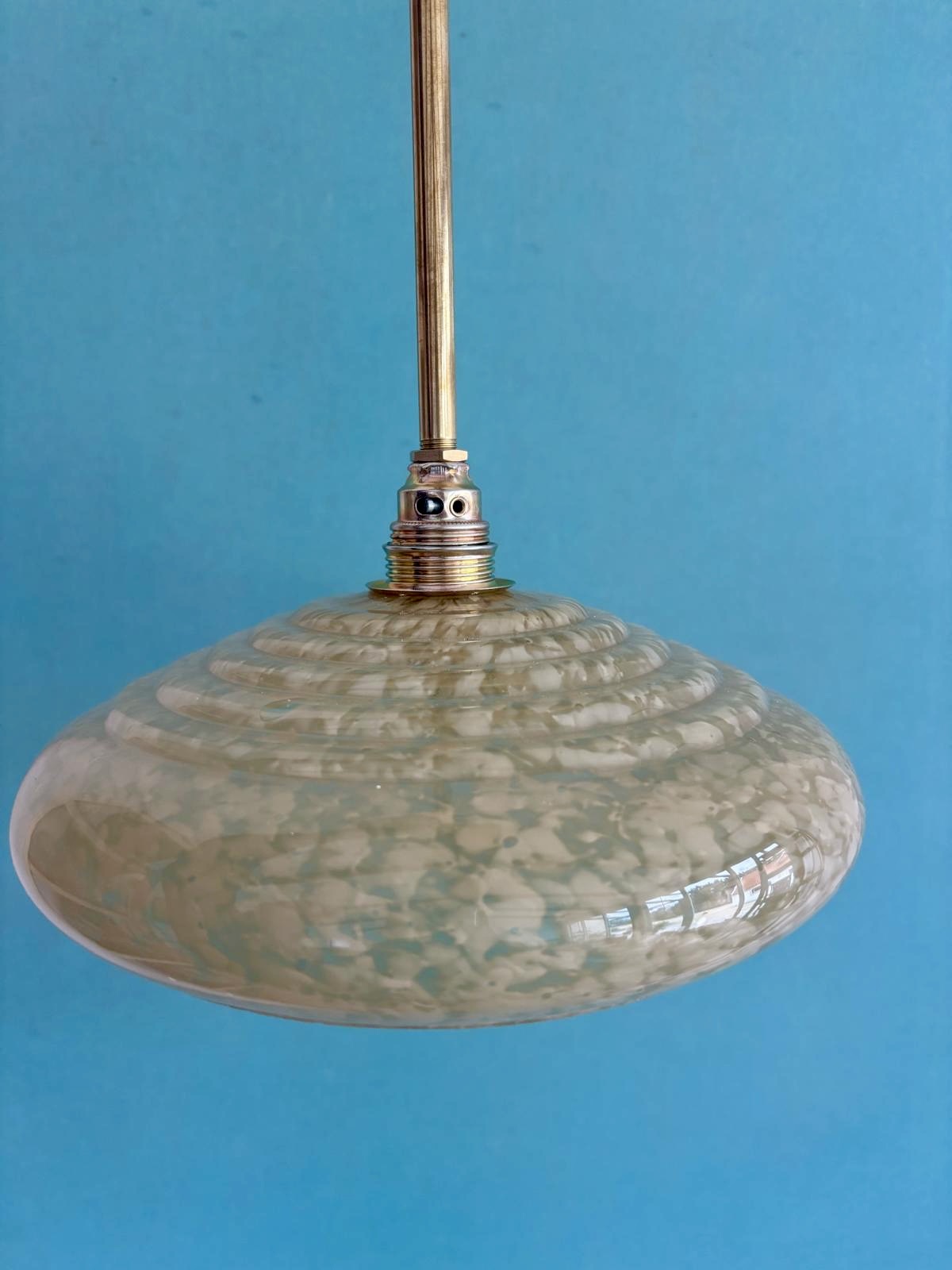 Authentieke Franse vintage Clichy lamp van geel glas. Prachtig als hanglamp, wandlamp of op een stijlvol gouden armatuur.